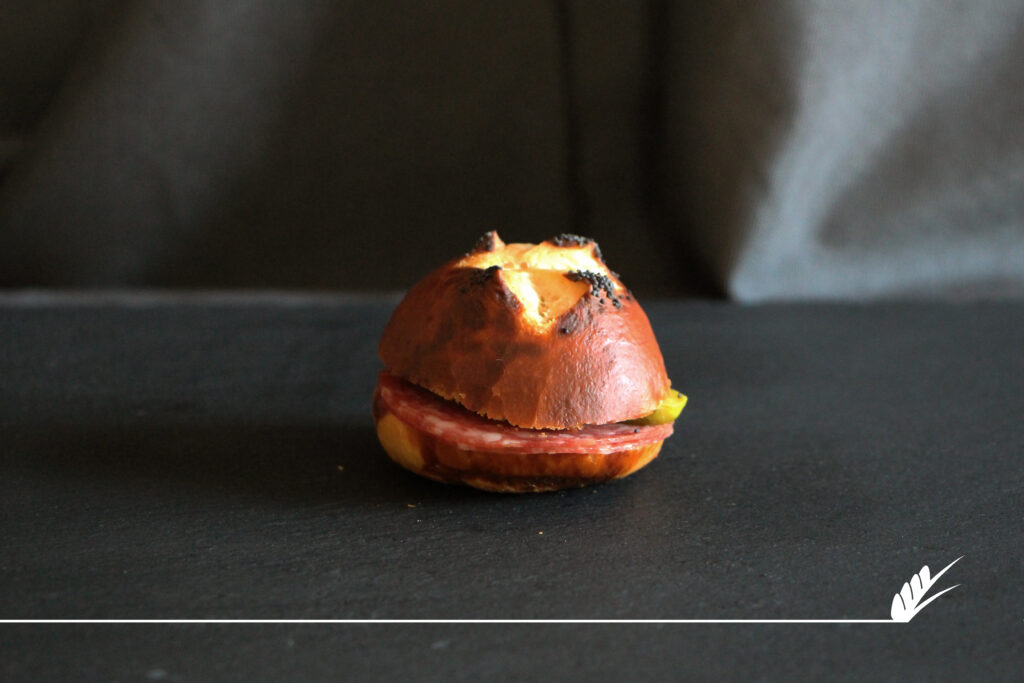 Pour les amateurs de saveurs plus prononcées, notre mini-sandwich salami combine la puissance du salami à la fraîcheur du pain moelleux.